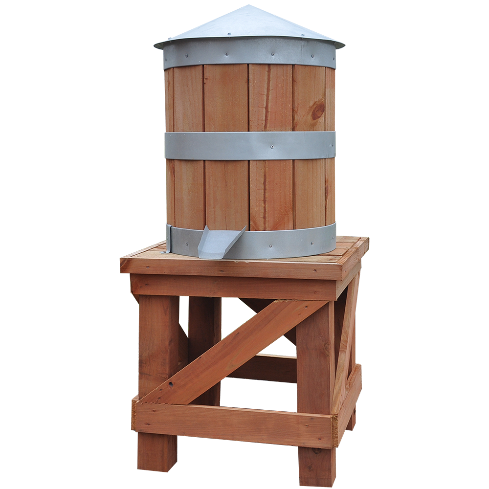 Our small decorative water tower is sized to complement our 8-foot windmill. Ships partially assembled (barrel will need to be secured to stand with included hardware).